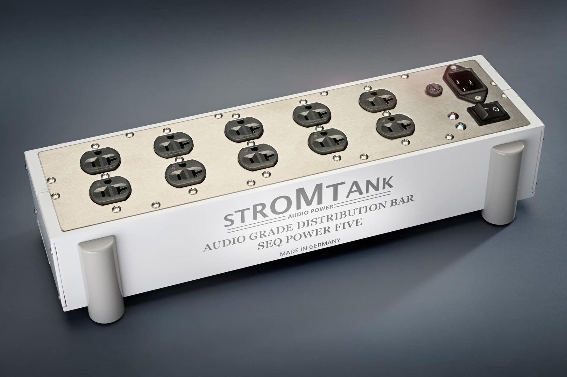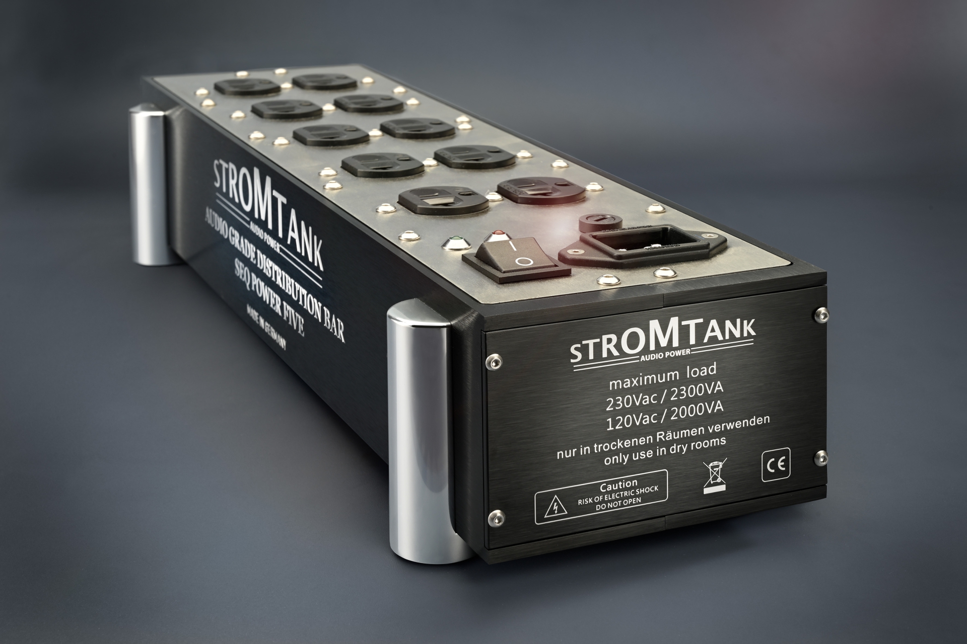 THE technically consistent extension of the StromTanks: the SEQ-5 power strip. “SEQ” stands for sequential, because the sockets are switched with a time delay to protect against harmful current peaks. All five custom-made US receptacles are equipped with pure, rhodium-coated copper contacts and the DDS filtering, which effectively prevents the backflow of interference signals into other devices when connecting digital devices, as well as interference from the mains. The solid housing made of stainless steel with aluminium and magnesium reliably prevents radio interference. And even a phase tester is not missing.